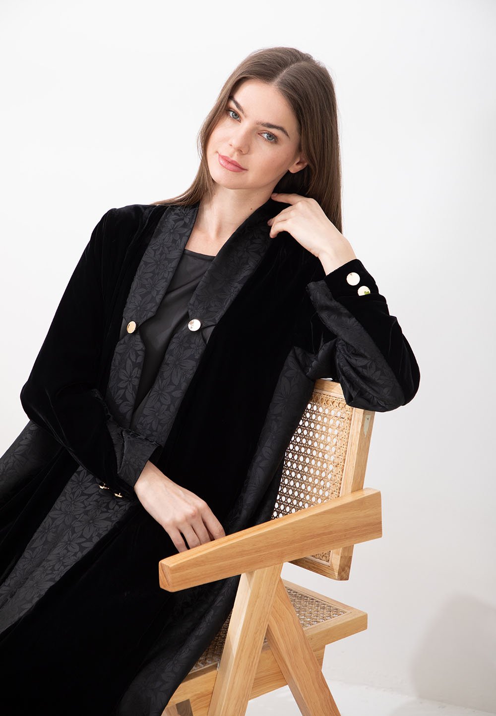 Modern internet fabric abaya with velvet collar for office chic